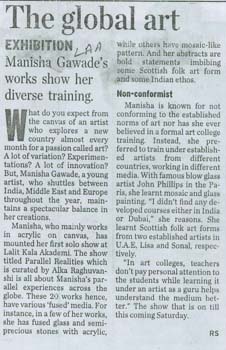 Manisha Gawade has spent 14 years in Dubai and absorbed the cosmopolitan flavours of West Asian cultures. She has been an extensive traveller who has been trained in various forms of paintings in several parts of the world. Her work is a fusion of the Indian as well as Western and Arabic culturescape.